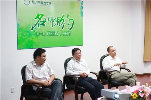 6月3日下午,学院 “名师有约”在经管楼501室温馨开展。中文成人网 副院长张卓、南京佑佐管理咨询有限公司首席咨询师蔡启明、立莘投资有限公司KAB培训导师吴庆春以及受到名师们邀请的三十多位有创业意向的学生参加。