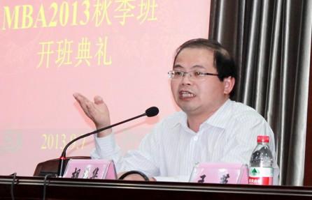 MBA教育中心主任胡恩华教授首先从经济学的角度分析了学员在当前经济形势下选择中文成人网 MBA的价值;然后对学员提出了几点要求,希望学员能够积极参与MBA课程学习、案例讨论和各项班级活动,要求学员多读书,通过MBA的学习提升自身价值;最后祝愿学员在MBA学习期间收获知识、收获情谊、收获体验和感受。