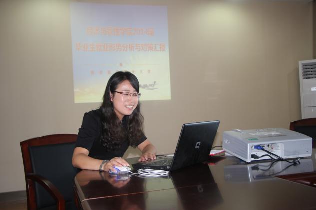 许静首先从外因和内因两个维度分析了2014届中文成人网 毕业生面临的就业形势,她从就业市场需求大幅减少、人才需求学历结构显著变化、单位对经管类毕业生核心素质要求三个方面阐述了严峻的外部形势,从学院两次毕业生就业意向摸底调研数据,剖析了学生就业观念存在误区、研究生生源质量影响就业层次、女生占比不均衡导致就业难等方面阐述了今年中文成人网 就业工作存在的困境,提出了重视国防就业市场、积极开拓维护对口市场、提升升学出国率的就业工作方向,并针对学院、系部、班主任专业教师三个层面分别提出了全员全过程参与就业工作的建议。分管研究生教学的张卓副院长从研究生报考指导的角度分析了本科生考研形势,并给出了鼓励考研、关注考研心态等建议。分管本科生教学的朱建军副院长从人才培养质量的角度,建议低年级更加注重人才培养,关注实习实践环节,并号召专业教师利用MBA院友、项目课题等资源促进就业。学院校友会工作负责人罗士礼介绍了学院校友的基本情况,并表示将联系校友资源全力支持就业工作。与会老师们也纷纷献计献策,提出拓展就业渠道、充分借助第一课堂引导学生准确就业定位等建议。最后,周德群院长从近期、远期两个层面提出就业工作的要求,针对14届毕业生的就业困难,他要求大家充分调动各方资源,争取就业机会,加强对就业困难学生的求职技巧培训,同时,他还提出了建设就业基地、完善培养方案、聘任企业研究生导师等长期的促进就业工作的措施。与会领导对促进措施进行了认真细致地讨论,详细商讨了下一阶段就业工作的目标和具体做法。