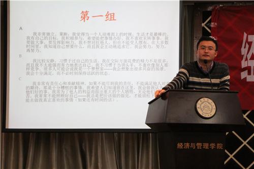 授课中,丁荣茂老师深入浅出的跟学员讲述了中国梦的内涵,南航几代人为实现高水平研究型大学梦想所作的奋斗,激励经管学子“仰望星空,脚踏实地”;裴宇晶老师激情慷慨的给学员们分析人的九种性格,教会学员明白自己个性、接纳自己的短处、活出自己的长处,懂得如何与不同的人交往沟通及融洽相处,与别人建立更和谐的关系;徐川老师则向学员介绍了从古至今的中国传统文化,幽默风趣的语言一次次赢得学员们的掌声;学校八大学生组织主席们则从团干实务的角度向学员传经送宝,分享自己奋斗历程与心路;中文成人网 优秀研究生代表李佳兴和刘晓倜与大家分享了她们在援藏支教活动中的感受与体验,无论是西藏的教学教务工作,还是“三下乡”社会福利义工活动,她们的无私和热情让学员们在体悟温暖真情的同时更加深刻理解学生干部的责任与义务。