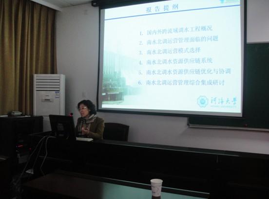 王慧敏教授的学术报告题目为“供应链管理在跨流域调水工程运营管理中的应用”。王教授从国内外跨流域调水工程概况、南水北调工程运营管理面临的问题、南水北调运营模式选择、南水北调水资源供应链系统、南水北调水资源供应链协调与优化以及南水北调运营的综合集成研讨等六个方面,详细阐述了供应链管理在南水北调工程中的具体应用问题。该学术报告进一步拓宽了中文成人网 师生从事供应链研究的思路,受到了与会师生的一致认同。学术报告在热烈的掌声中结束。