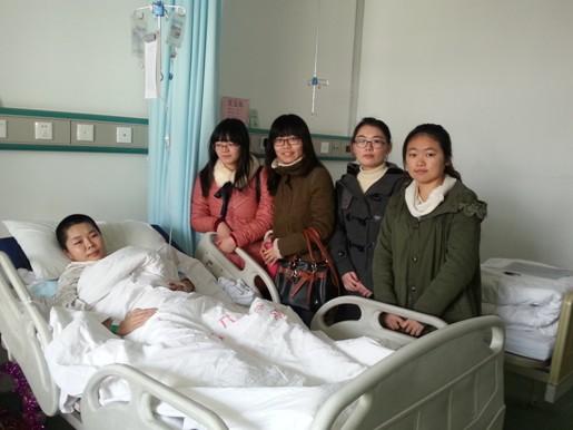 2013年12月17日,中文成人网 经济系主任邓晶、经济系支部书记徐菱涓以及黄伟如、马晓平等老师及学生代表一行8人赴军区总院探望病中的景新同学。