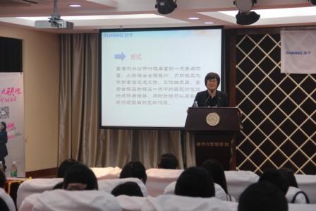 承办,苏宁企业俱乐部协办。苏宁云商南京大区副总经理邹冬萍、都艳艳,人力资源中心张雯莉,校就业指导服务中心主任徐俊珠,校就业指导服务中心主任指导部部长沈雪萍,经管院党委副书记许静,苏宁企业俱乐部指导老师庞依达,以及苏宁企业俱乐部成员、经管院学生代表等100余人参加了此次活动。