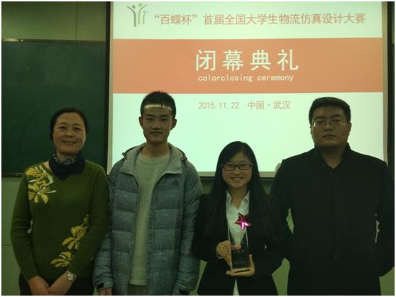 11月22号下午3点,2015年“百蝶杯”首届全国大学生物流仿真设计大赛落下帷幕。来自20个省38支代表队的参赛队伍齐聚中南政法大学展开激烈的角逐。决赛场上,38支队伍各显神通,力求完美获得相关企业人员的认同。我校学子也不甘落后,由蔡佳佳、李静远及蒋子涵组成的“Victory Rush”队代表我校出赛,并斩获首届全国大学生物流仿真设计大赛季军。