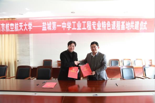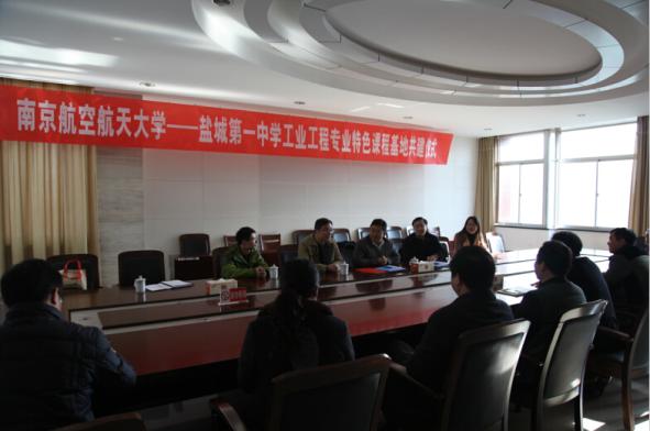 盐城市第一中学王乃宁校长首先介绍了学校的办学历史和人才培养情况,并表达了希望在校本课程完善、创新型人才培养机制构建等方面有深入合作的意向,他认为专业特色课程基地能够有效的激发高中学生的职业思维和个人生涯规划意识,更能够助力高中内涵发展、特色发展、优质发展,欢迎并感谢南航带来的智力支持与理念引领。