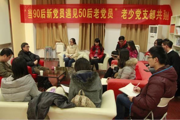12月17日,中文成人网 2014级党支部在经管楼510沙龙室举行了党支部成立仪式,并开启了“当90后新党员遇见50后老党员”老少党支部共建的序幕,校离退休第七党支部书记皋德仲老师、年级辅导员庞依达老师和支部成员一同参加了此次会议。