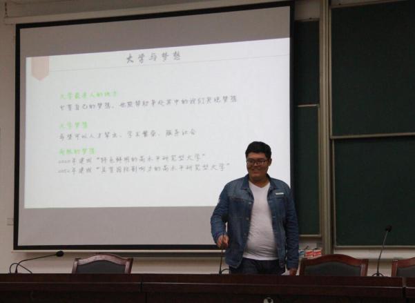 在将军路校区D1213教室召开了新生适应力成长悦享会暨群星计划导航课,2016级辅导员朱一豪、刘旭为学院全体新生授课。本次导航课以“大学和梦想”为主题,旨在让同学们进一步明确自己的目标,把握大学时光,为完成梦想而努力。