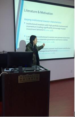 汇报结束后,在座老师就杨帅博士学术报告中机构投资者股东影响力,上市公司投资决策等问题进行了交流和讨论,为其深入研究提供了很好的建议。