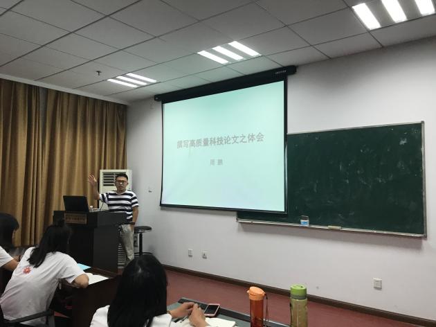 2017年9月26日18:00,在学院704教室,周鹏老师为2017级研究生新生做了题为“如何撰写高质量科技论文”的精彩学术讲座。讲座由罗正军副教授主持,全院近百名硕士研究生和博士研究生参加了此次讲座。