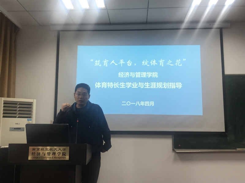 2016级本科生辅导员朱一豪首先就体育特长生的学业情况向大家做了汇报,从学习成绩、队伍情况、日常管理等多个方面进行了客观翔实的分析,并指出了当前所存在的问题。随后院团委书记、毕业班辅导员庞依达结合近年来体育特长生毕业生的就业及升学情况,对体育特长生未来的学业与生涯规划进行了指导,并以具体的学生事例向同学们强调了学业成绩及专业能力的重要性。