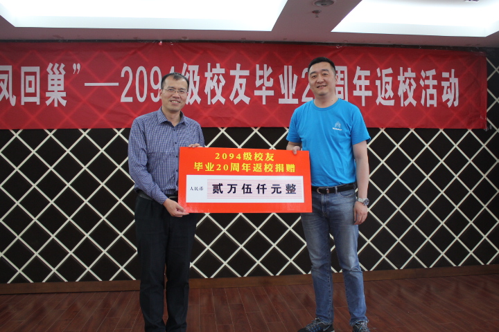 接着,1994级校友冯剑寒代表2094级向母校捐赠两万五千元,学院副院长邓晶代表学院接受了捐赠。