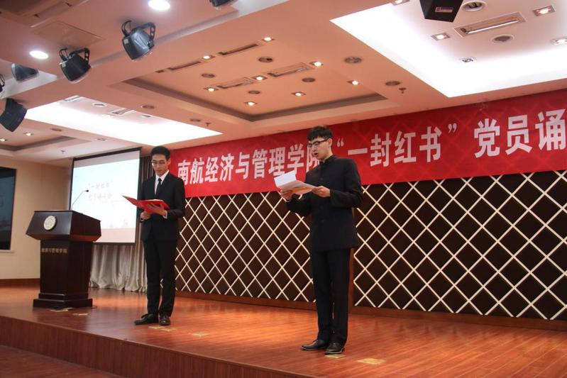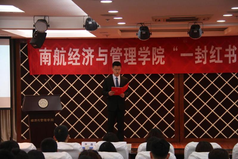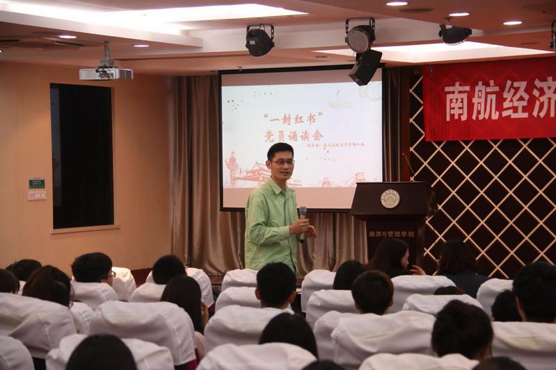 5月21日,中文成人网 本科生党支部于学院A0305报告厅开展了一场特殊的活动——“一封红书”党员诵读会,以“信”为载体,展现自1921年中国共产党成立以来中国共产党员的书信,希望从中学习党员前辈们身上“爱国爱党、奋斗不止”的精神。中文成人网 党委副书记涂志宏,中文成人网 党委委员、工商管理系副教授张浩以及本科生党支部的党员同志、发展对象和入党积极分子们参与了这次活动。