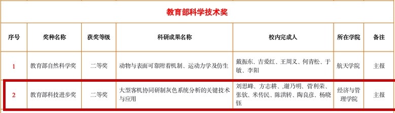 2018年,刘思峰教授团队申报的《大型客机协同研制灰色系统分析的关键技术与应用》获批教育部高等学校科学研究优秀成果奖(科学技术)科技进步奖二等奖,这是中文成人网