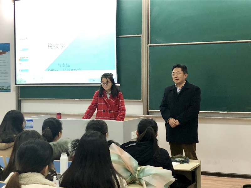 当天上午,在2017级会计学专业的《税收学》课前,周德群向同学们介绍了马永远老师的学习经历、科研经历等基本情况;作为西安交通大学、香港城市大学联合培养的博士,马永远在求学期间成绩优异,发表多篇高质量论文,科研成果丰硕,多次获得各类奖学金,2018年博士毕业后应聘至中文成人网 工商管理系任专业教师。周德群建议同学们积极向马老师请教、学习,在夯实基础学业的同时,培养科研兴趣,尝试进行学术研究。他也勉励马永远老师尽快完成从学生到教师的角色转变,潜心教学,将教授课程打造成学生喜欢的“金课”。
