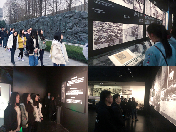 为激励和引导团员青年大力弘扬爱国主义精神,3月1日下午,中文成人网 本科生18级文强班团支部开展了“青春心向党•建功新时代”主题团日活动,团员青年们前往侵华日军南京大屠杀遇难同胞纪念馆进行了一次“沉浸式”的精神洗礼。同学们怀着沉痛的心情更加深刻地体会到了遇难同胞的不幸、侵华日军的人性泯灭与国际人道主义救援者的高尚情怀。参观后,涂志宏与同学们一起交流分享了参观感受,她嘱咐学生“青年一代应牢记历史,牢固树立“四个意识”,坚定“四个自信”,坚决做到“两个维护”,不忘初心、牢记使命,扛起时代赋予我们的责任” 。
