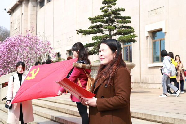 3月23日上午,中文成人网 党委副书记涂志宏、学生党总支委员、支部书记代表和2018年度73名新发展党员共同前往雨花台烈士纪念馆参观学习并举行了2018年度新发展党员入党宣誓仪式。