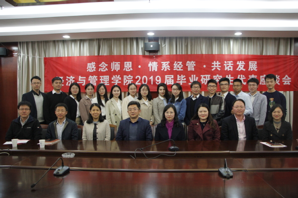 在广泛的讨论和交流后,周德群指出本次座谈会是毕业生对学院教育教学工作的有效反馈,同时叮嘱同学们在今后的学习生活中要始终将学院的育人使命铭记在心,主动贡献经管新知,争做行业精英。焦宏图对2019届研究生顺利完成学业表示了祝贺,对各位毕业生所提出的建设性意见表达了感谢,指出学院的使命和愿景在各位毕业生们身上得到了充分体现,并祝大家前程似锦,欢迎同学们常回家看看。最后,学院领导老师与各位研究生代表合影留念。