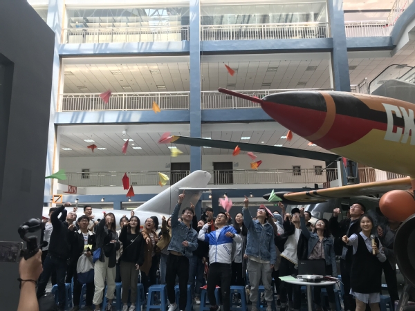 团日活动中,全体团员还现场交流了对本次团日活动的感悟,并在纸上写下自己未来的奋斗目标,叠成纸飞机并“放飞梦想”,团支部将封存每位同学的梦想,建设“飞行梦想银行”,毕业十周年后将再次开启此次“梦想存折”。本次团日活动在齐唱团歌落下帷幕。