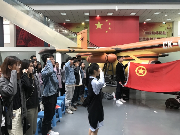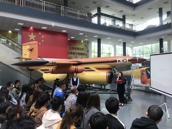 齐唱国歌后,师生共同参观了校航空航天博物馆,通过两位讲解员的讲解,了解了我国航空航天事业发展历程,同学们对航空报国精神有了更深的认识。随后,姜顺龙为同学们讲授“纪念五四运动 100 周年”主题微团课,他结合个人成长经历、大飞机研制经历等过程,和同学们分享了五四运动的历史意义以及在航空航天事业中五四精神的传承与体现等内容,饱满的精神状态、丰富的人生阅历具有很强的感染力。