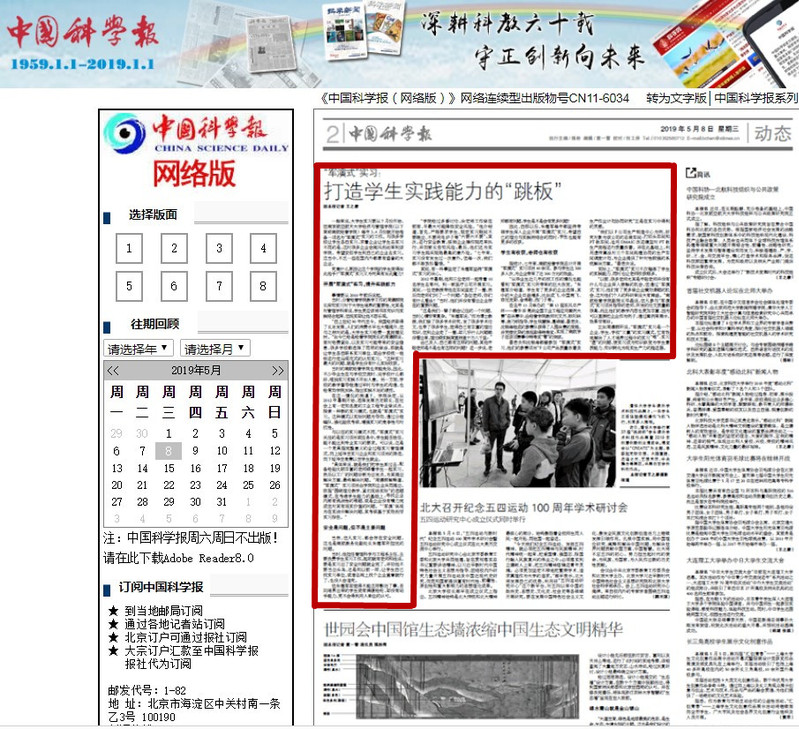 5月8日,《中国科学报》二版头条报道中文成人网 “军演式”实习工作,现转发全文: