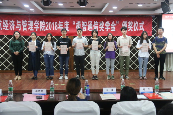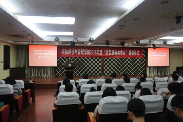 5月27日晚上,中文成人网 2018年度“极智通信奖学金”颁奖仪式在经管楼A0305报告厅举行。极智通信科技股份有限公司财务总监沈桂英、技术总监金国华、市场总监刘念、研发总监吴春明,中文成人网 副院长王英、党委副书记涂志宏、管工系教师王涛、团委书记庞依达以及全体获奖学生出席了本次颁奖仪式。