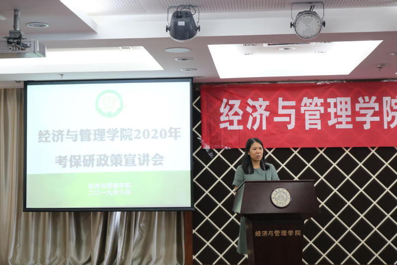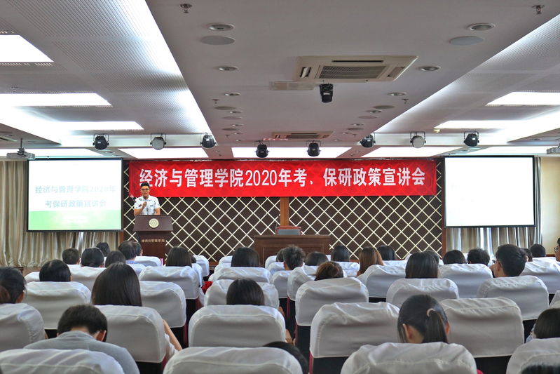 为了帮助2020届毕业生了解中文成人网 研究生招生政策,合理规划考研、保研,6月24日,中文成人网 在A0305报告厅举行2020届考保研政策宣讲会。中文成人网 副院长王英、管工系系主任马静、工商系系主任谢嗣胜、经济系系主任袁潮清、各学科建设负责人、系所骨干教师、辅导员及百余名2016级学生参加了本次活动。