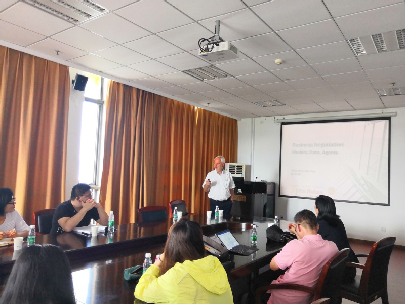2019年6月27日下午,加拿大康考迪亚大学教授Kersten受学院智能决策与风险分析研究所邀请,在南航将军路校区中文成人网 706做了题为“Business Negotiations Agents,Model,Data”的讲座。学院教授徐海燕、教授陈洪转、副教授关叶青等教师及部分硕、博研究生现场聆听了教授Kersten的报告,本次学术报告由徐海燕老师主持。