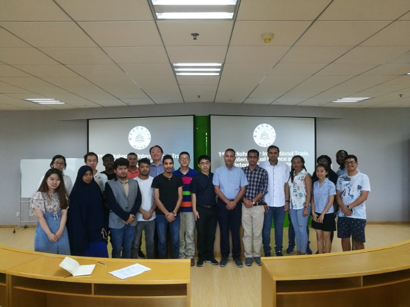 6月21日下午,中文成人网 举行了首期留学研究生经济与金融学术研讨会,经管院副院长王群伟、院长助理陆珩瑱、经济系系主任袁潮清、以及相关专业的近二十位留学生参加了研讨会。