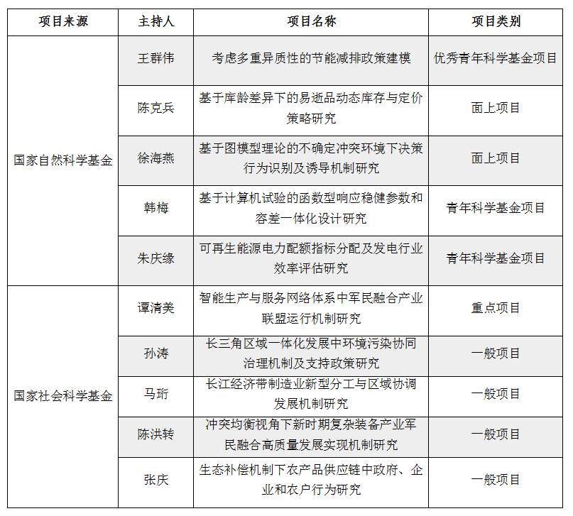 近期,国家自然科学基金委员会、全国哲学社会科学规划办公室陆续公布了2019年度国家自科基金与国家社科基金的资助名单,学院10个项目获得立项。其中,国家自科基金项目获批5项,包括优秀青年科学基金项目1项、面上项目2项、青年项目2项;国家社科基金项目获批5项,包括重点项目1项、一般项目4项。具体名单如下: