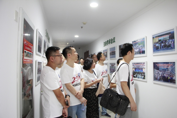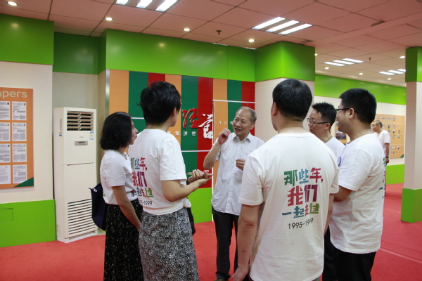 抵达后,黄炳辉、罗士礼、庞依达带校友参观了中文成人网 教学楼,校友们纷纷在照片墙上找寻自己的身影,往事历历在目。随后,校友们移步院史馆,围着老师听他们讲当年的故事,忆往昔,谈今朝,为中文成人网 二十年来的巨大变化引以为傲。