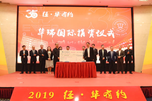 华瑞国际捐资以及华瑞商学院成立两大仪式揭开了看今朝的序幕。仪式一:为了进一步推动强强联合,经管与华瑞共同合作,成立华瑞商学院。由华瑞国际集团创始人康宜华先生、中文成人网 院长周德群教授共同为华瑞商学院揭牌。华瑞商学院未来将面向实战型精英人才开展专业化培训,同时进一步开发学院高级经理人发展课程,实现校企共同成长。仪式二:华瑞国际捐资仪式。华瑞国际历来重视回报社会,多年来做了大量的捐赠助学等公益事业,在联谊活动中,华瑞国际为经管捐资100万,用于学院奖助学金、奖教金、学科建设及科学研究,支持中文成人网 的建设与发展。80级校友、华瑞国际集团创始人康宜华先生、中文成人网 党委副书记、教育发展基金会理事长陶勇教授共同签署捐赠协议。两大仪式共同将现场气氛推向了新的高潮。