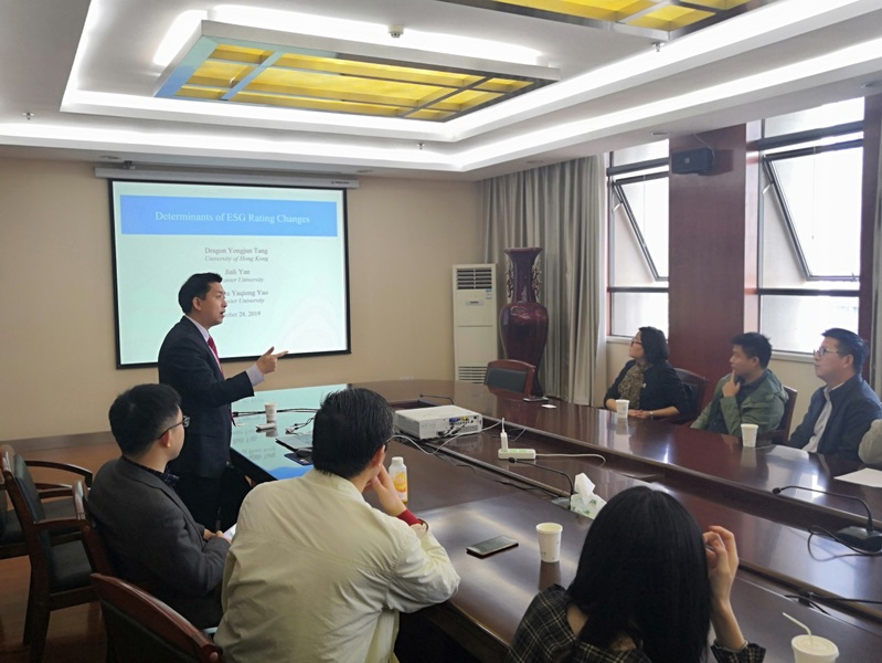 10月28日上午,香港大学汤勇军教授应学院金融研究所邀请,在南航将军路校区中文成人网 604作了题为“环境、社会及治理(ESG)评级变化的决定性因素”的学术报告。中文成人网 副院长王群伟、金融学科专业负责人教授段进东、经济系主任袁潮清、副主任徐菱涓、院长助理陆珩瑱、王建立、苏飞、魏悦羚等教师及数十名硕、博研究生现场聆听了汤勇军的报告。本次报告由王群伟主持。