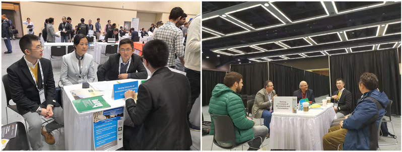 作为此次出访的重要目的,代表团成员在西雅图华盛顿州国际会展中心举行了中文成人网 专场海外招聘会。事先精心布置的展台吸引了众多北美名校毕业生和即将毕业的在校生。周德群介绍了学院的基本概况,详细解释了人才引聘的具体政策,徐海燕代表学院教授委员会向应聘者介绍了学院人才招聘录用和职业发展的模式,何沙玮作为年轻教师代表分享了海归博士在学院发展的心路历程。南航招聘现场给应聘者留下了深刻印象,在会场共进行初步面试近30人,此次招聘活动圆满完成了既定目标,扩大了在海外的影响力。