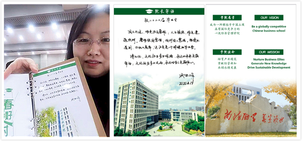 在广泛的讨论和交流后,焦宏图代表学院为2020届毕业研究生代表展示并赠送了印有院长寄语的定制笔记本作为纪念礼物。焦书记对同学们提出了殷切希望,她希望毕业生们能够志存高远、脚踏实地,始终牢记“智周万物,道济天下”的校训和“尚德励学,筹策济世”的院训。