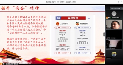 5月28日中午,中文成人网 2018级团总支开展“云端模拟两会”主题活动,辅导员许乃元、2018级全体团支书、学生代表参加了本次会议。