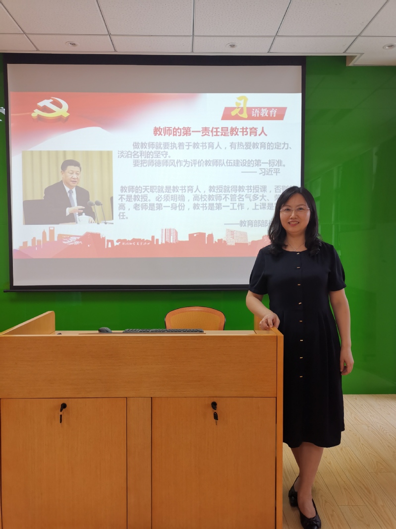 焦宏图书记首先解读了《中共中文成人网 委员会关于加强和改进教师思想政治工作的意见》和《中文成人网 教职工师德“一票否决”实施办法(试行)》这两个文件,向各位老师明确了党和国家对于教师的宏观要求,又从学校发展实际及教师发展需求的角度,阐明了加强和改进教师思想政治工作的重要性和必要性;接着,她在解读教职工职业行为准则的基础上,又介绍了学校教师职业道德考核、教师培训体系、教师荣誉体系等建设现状。