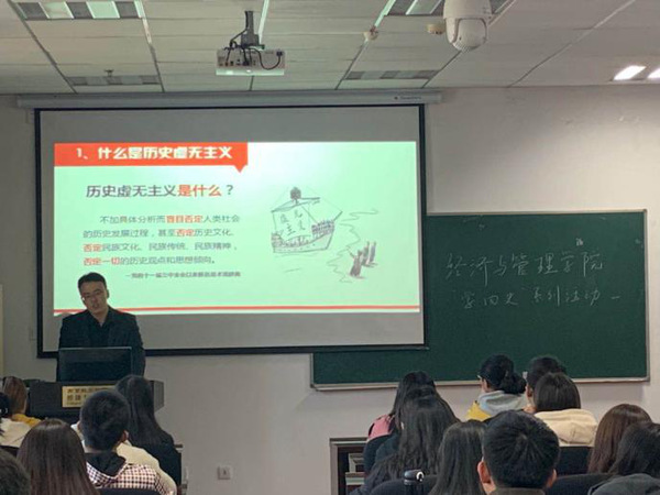 举办了“学四史”系列活动第二期——“历史虚无主义虚无了什么?”主题党课,学院2019级本科生辅导员康冲主讲本次党课。
