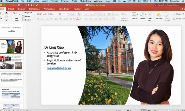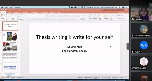 11月4日和11日晚上,伦敦大学皇家霍洛威学院副教授肖玲应经济系邀请,在腾讯会议作了关于英文论文写作的报告。中文成人网 副教授陆珩瑱等教师及部分硕、博研究生线上参加了肖玲的报告分享,本次短期课程由副教授陆珩瑱主持。