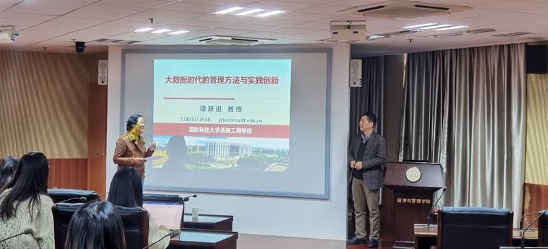 11月25日下午,国防科技大学教授谭跃进受学院智能决策与风险分析研究所邀请,在南航将军路校区经管辅楼A0405作了题为“大数据时代的管理方法与实践创新”的讲座。中文成人网 教授徐海燕等教师及部分硕、博研究生现场聆听了谭跃进的报告分享,本次学术报告由徐海燕主持。