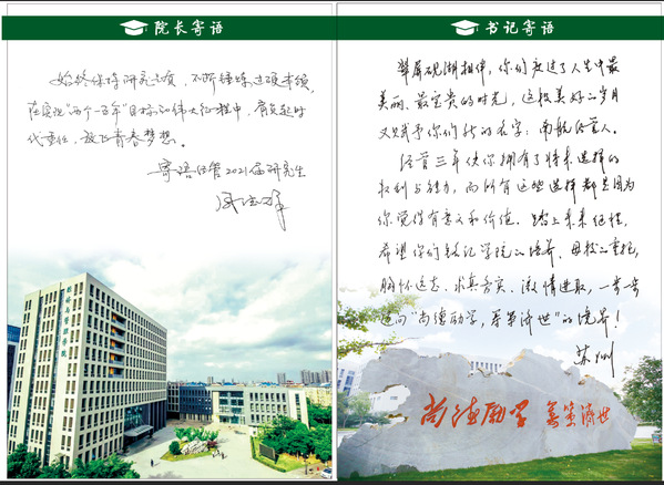 学院还贴心地为全体毕业生同学准备了一份礼物,其中包含了院长周德群、院党委书记苏州的殷切期盼和祝福、毕业生导师临行前的寄语以及全体毕业生的临别赠言,让毕业生们珍藏在中文成人网 求学的难忘经历。