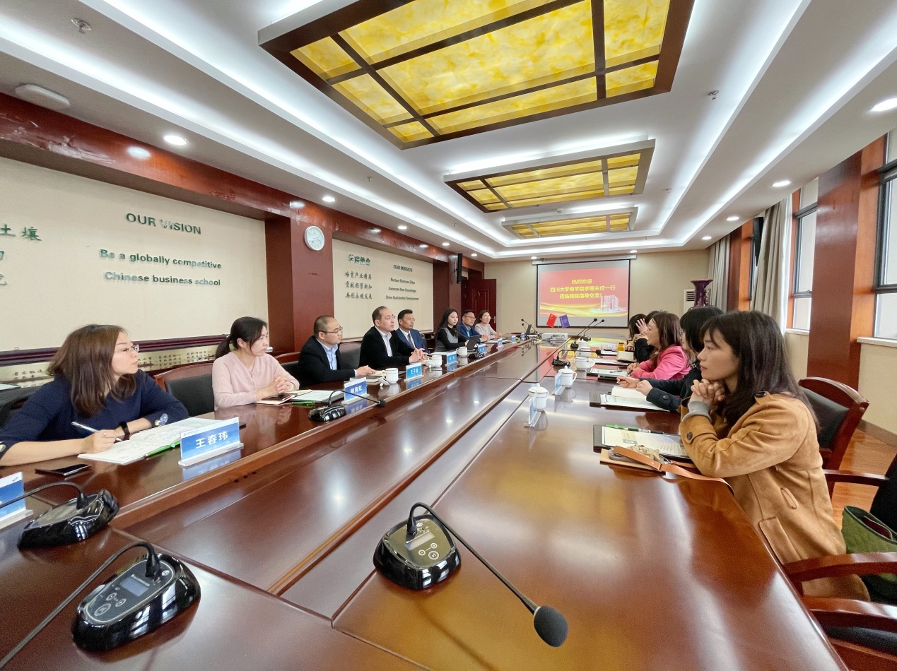 4月16日下午,四川大学商学院MBA教育中心主任李珊、招生品牌高级主管苟芳、品牌主管胡美怡、教务主管张倩、学生事务主管马力澜一行来中文成人网 调研。院党委书记苏州、副院长王子龙、教育培训中心执行主任杜刚以及中心所有老师陪同调研并座谈。