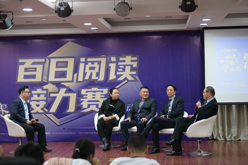 活动最后环节,南航会场还邀请了来自业界、学界的诸位代表:华瑞国际集体董事长康宜华、南航经管院副院长王子龙、南京旅游集团董事唐建国、华数科技副董事长张蕾,进行了主题圆桌论坛,围绕“新文科背景下的深度阅读和MBA教育创新”展开讨论,在场嘉宾各抒己见,气氛热烈。论坛过程中,南航经管院副院长王子龙向所有MBA学生推荐《管理的实践》一书,希望大家能从书中找到现代管理学的根源,真正学习到实用有效的信息。
