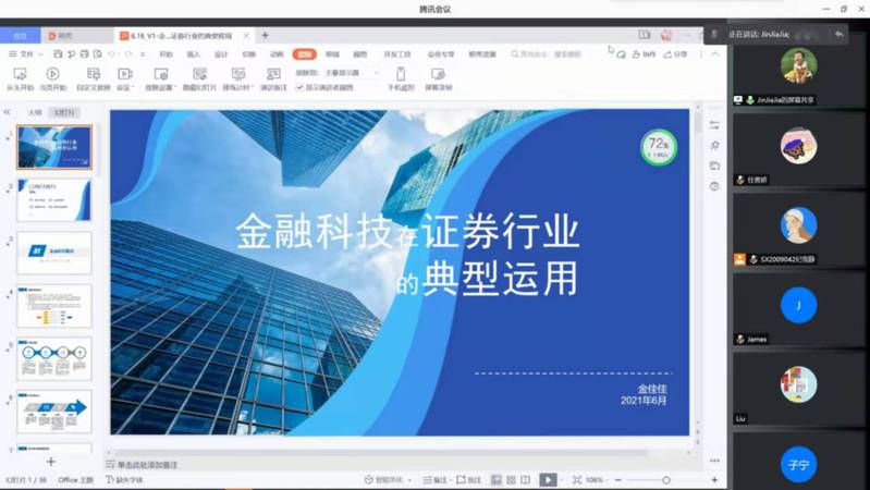 6月16日晚上,华创证券产业金融部执行总经理金佳佳应中文成人网 中文成人网 信息管理与电子商务研究所的邀请,通过腾讯会议作了“证券行业的金融科技问题分析”报告,中文成人网 教授米传民以及诸多学生聆听了此次报告,本次报告由米传民主持。