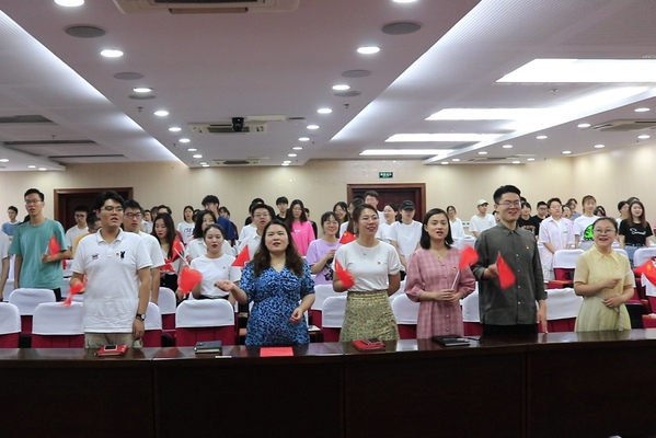 紧接着,在党员代表卢宇凌的带领下,全体在场党员面对鲜红的党旗,高举右拳,字字铿锵,重温入党誓词。在党旗前庄重宣誓,始终以一名优秀党员的标准鞭策和激励自己,立足现阶段,在学习百年党史的过程中,不忘初心,赓续革命精神;在实现伟大中国梦的进程中,牢记使命,不断砥砺前行。