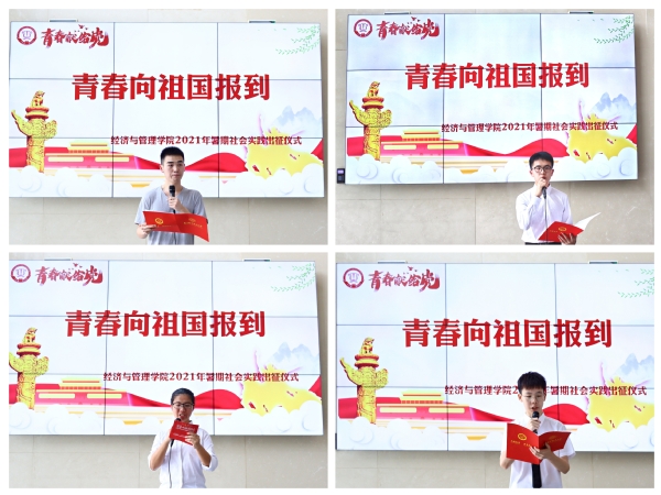 6月30日中午,中文成人网 “青春向祖国报到”2021年暑期社会实践出征仪式在中文成人网 一楼大厅顺利举办。36支暑期社会实践团队的近100名代表用经管学子朝气蓬勃、勇于担当、执于梦想的气概向祖国报到,向党的百年诞辰表白初心。院党委副书记涂志宏,院团委书记刘小杨出席此次出征仪式。