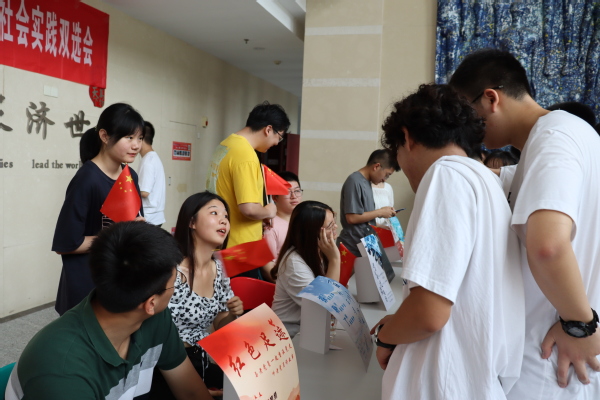 此外,为了帮助同学们更好地参与到社会实践中来,学院开创经诚团结,济济一堂暑期社会实践双选会。活动中,各个团队代表耐心为同学们讲解自己的活动内容,邀请志同道合的朋友加入到自己的团队之中;许多同学们也通过双选会这一平台打开了视野,找到了自己心仪的社会实践团队。将点滴的个人之力,汇聚成奔流不息的青年浪潮。