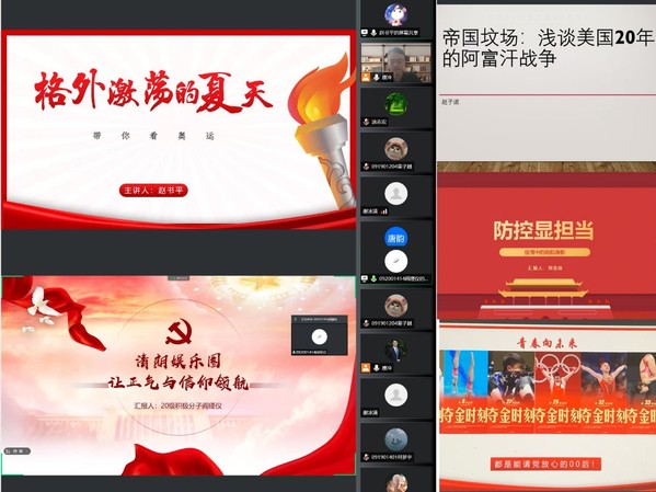 沙龙由主题发言和圆桌论坛两个部分组成,在主题发言环节,五位主讲学生结合自身假期所思所感和研究方向,针对疫情防控、奥运盛会、西藏和平解放70周年、阿富汗战争、清朗娱乐圈进行了主题分享。刘金良以《防控显担当——疫情下的南航身影》为题,结合自身投身中文成人网 疫情防控党员先锋队的经历,讲述了在南京、在南航志愿参与核酸检测、后勤志愿、情况摸查的先进事迹,诠释了疫情面前“没有从天而降的英雄,只有挺身而出的先锋”。赵书平则以《带你看奥运——这个夏天,有点格外激荡》入手,带大家回顾了中国奥运的风雨百年路,畅谈东京奥运上同为“00后”运动员的精彩表现与可颂精神,倡议同学们要争做可以请党放心的00后,在自己的领域实现报国之志。卓玛曲吉为同学们分享了《雪域欢歌70载,西藏启航新时代》的感人故事,她通过讲述百万翻身农奴之一的爷爷、奋力改变命运的父亲、新时代学生党员的自己这三代人的故事,指出家族命运变化的背后是中国共产党强有力的正确领导以及“一步跨千年”的社会主义制度历史性飞跃。赵子诺以《帝国坟场——浅谈美国20年的阿富汗战争》为题,与大家分析了美国入侵阿富汗的前世今生,并针对“为什么阿富汗能成为帝国坟场”“美国为什么入侵阿富汗”等一系列问题进行探讨,一步步剖析“普世价值”的虚伪本质以及美式民主的局限性。阎瑾仪从娱乐圈专项整治行动入手,交流了对《清朗娱乐圈,让正气与信仰领航》认识和理解,她从饭圈文化到明星案件,直击“泛娱乐化”“苦流量已久”的社会痛点。此外,她着重强调“信仰”的力量,并对创建一个充满正气的社会充满希望。