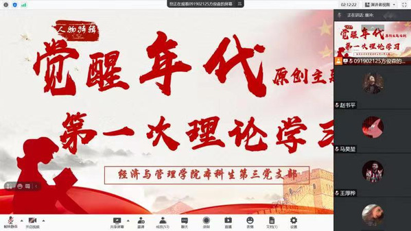 9月5日下午,中文成人网 本科生第三党支部举办《觉醒年代》原创主题话剧成员的第一次专题理论学习会,辅导员康冲、《觉醒年代》全体参演成员、学生党员代表等近百余名师生参加本次专题学习。