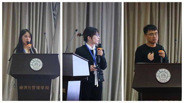 下半场的优秀研究生大会报告由南京林业大学经济管理学院张晖教授主持,来自南京理工大学、中国石油大学(华东)和中文成人网 的三位博士生耿倩洁、杨子坤、杨光磊分别作题为“Forecasting the volatility of the oil futures basis: univariate models versus multivariate models”、“Can renewable energy investment reduce carbon dioxide emission? Evidence from scale and structure”和“可再生能源技术创新和低碳技术创新对中国可持续能源转型的影响研究”的学术报告,并与现场师生进行了广泛交流。