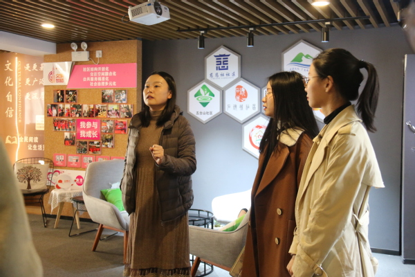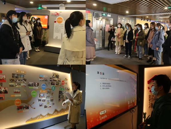 活动伊始,金陵汇党群服务中心讲解员时欣玮带领团干们参观了金陵汇红色街区党群服务中心的整个展馆,并为大家讲解了金陵汇的名称由来和极富深刻红色内涵的logo设计,介绍了包括阅读交流区、党群议事室和社会组织接待区等特色便民服务多功能区。